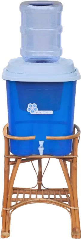 TerraClear Foundation (TCF) uses water filters made by TerraClear Production (TCP). The TCP Ceramic Water Purifier (CWP) is a zero-emissions, point-of-use ceramic water purification system. It consists of a pot-shaped ceramic filter element set in a plastic receptacle tank with a lid and spigot to protect filtered water from recontamination.